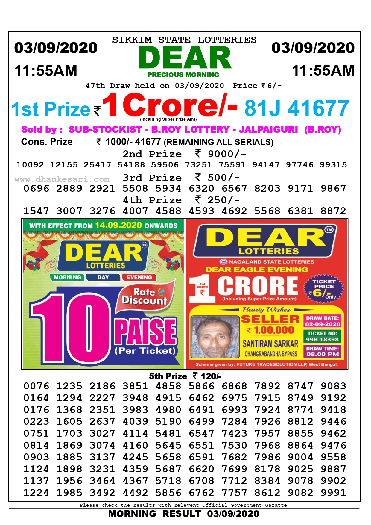 Dear Precious Lottery Result Today 4Pm Dear Precious Lottery Result Today 4Pm : Sambad lottery is also popular in the west bengal and kolkata.