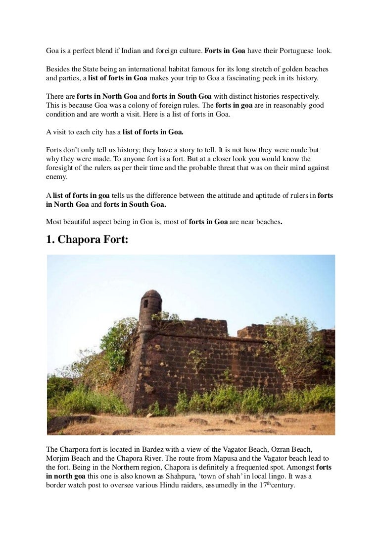 Forts In South Goa Forts In South Goa : The fort is one of the most important places to visit in south goa.
