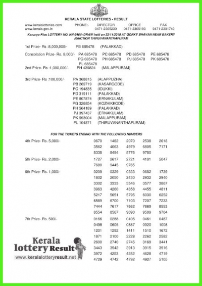 Karunya Plus Kn240 - First prize rs 80 lakh.