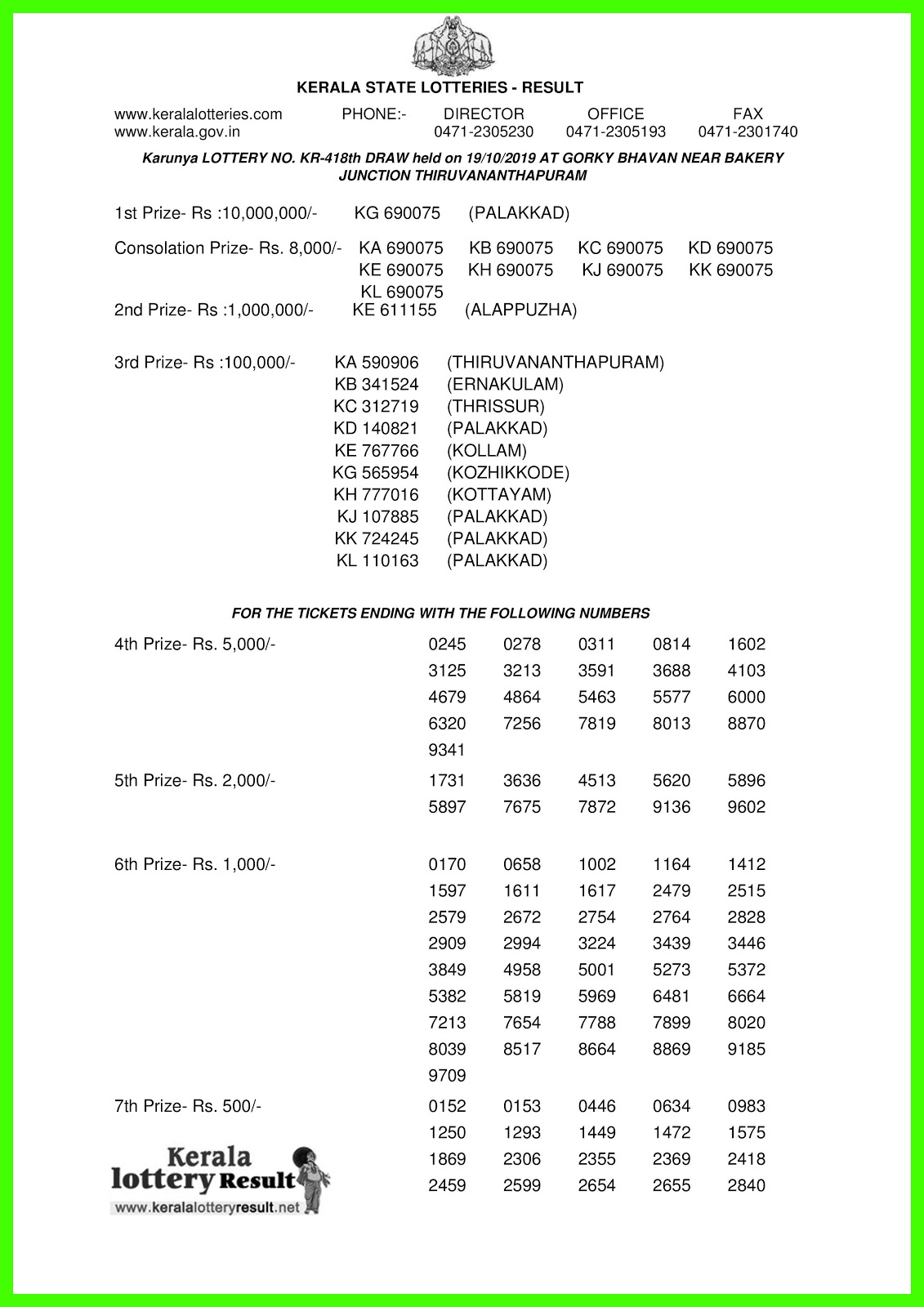 Kerala Lottery Result 19 10 18 Kerala Lottery Result 19 10 18 / Below you can see the details of draws which are to be the draw is the first sunday of every month.