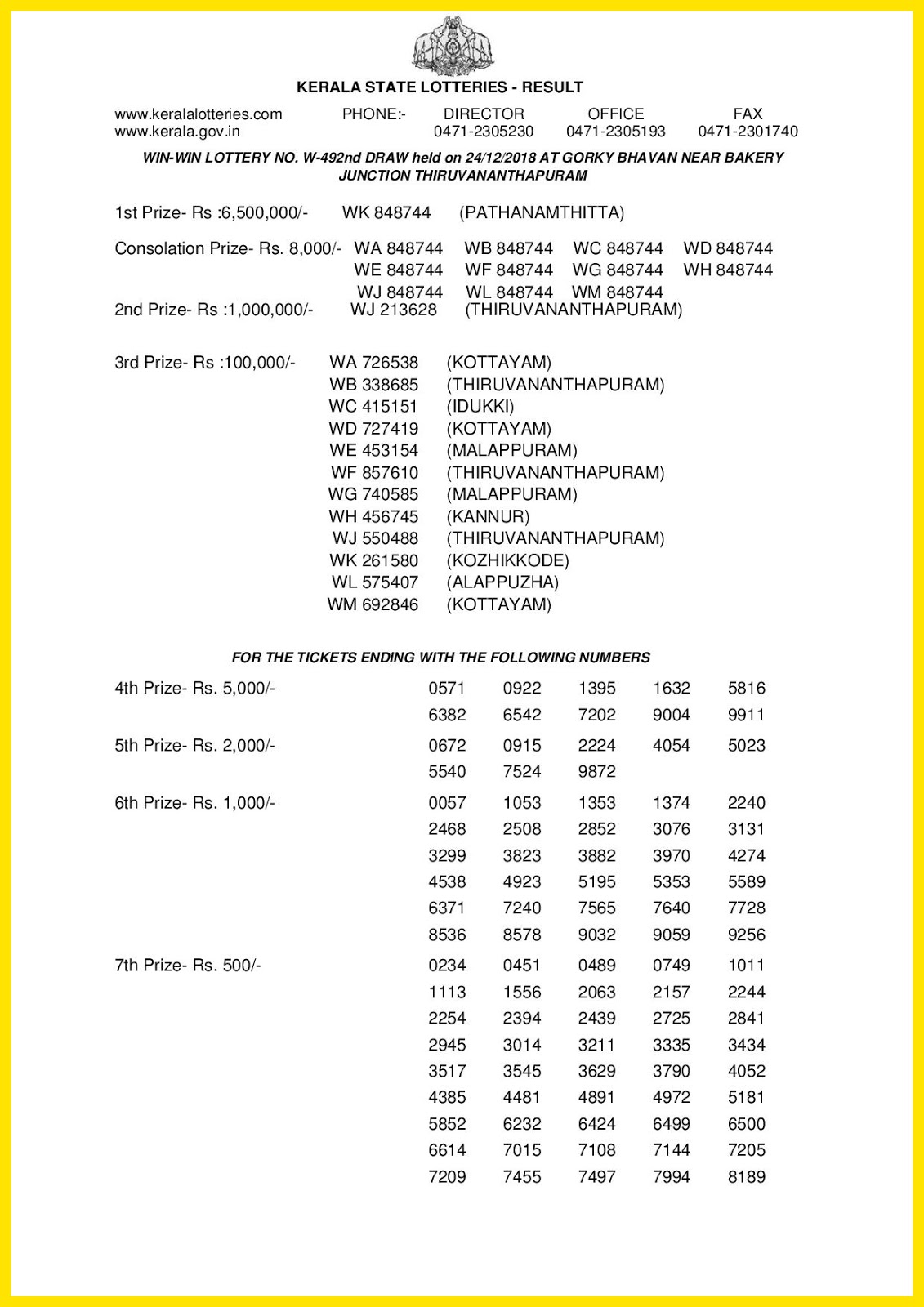 Win Win Lottery W 492 Result 24 12 2018 Kerala Lottery Result Win Win Lottery Guessing Numbers Win Win Lotte - 8.4.21 karunya plus kn 363 lotteries.