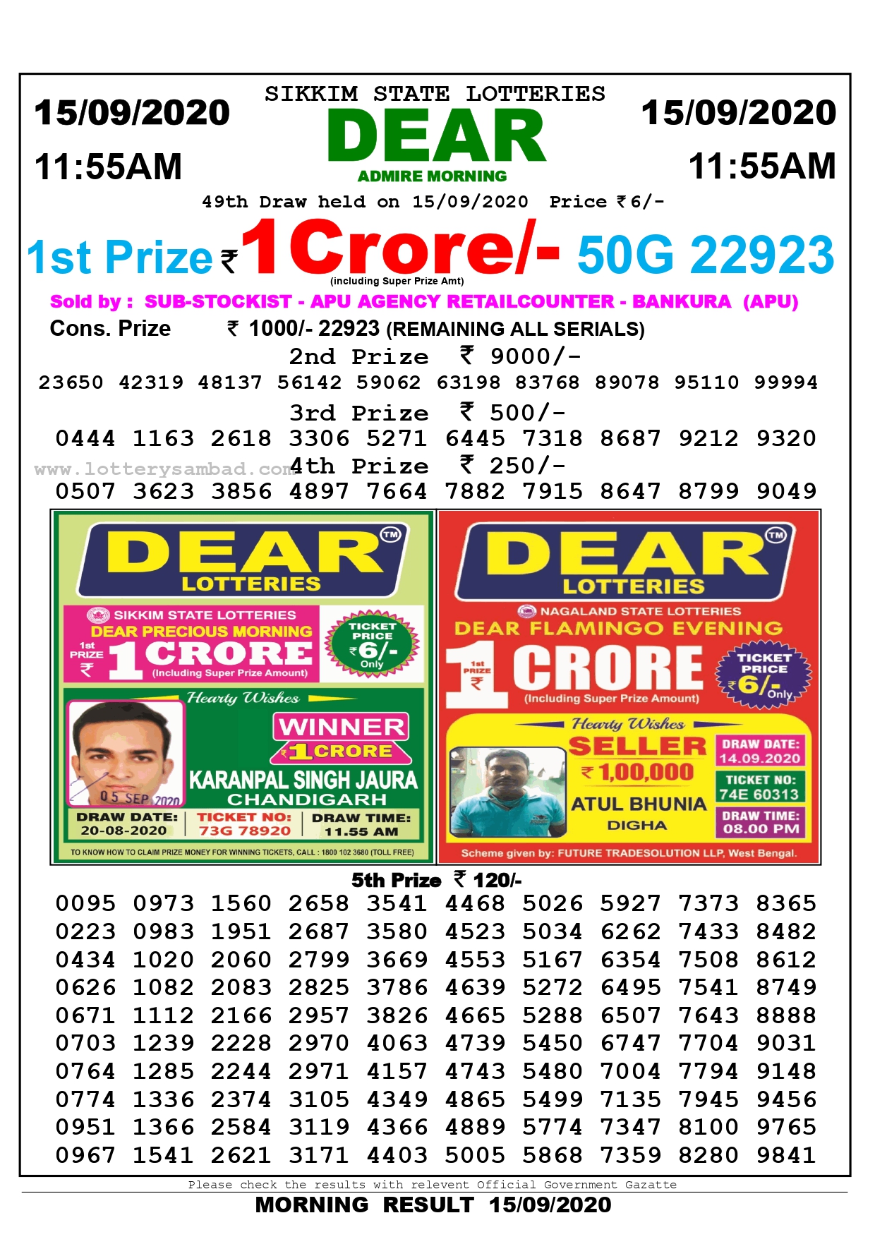 Download Result Nagaland State Lotteries Dear Teesta Tuesday Morning 15 12 2020 11 55am All Type Of Lottery Results - Our team members are working on our and update daily bases, so you can the official time when lottery sambad result announces is 8 pm in the night, 11 am in the morning and 4 pm in the noon.