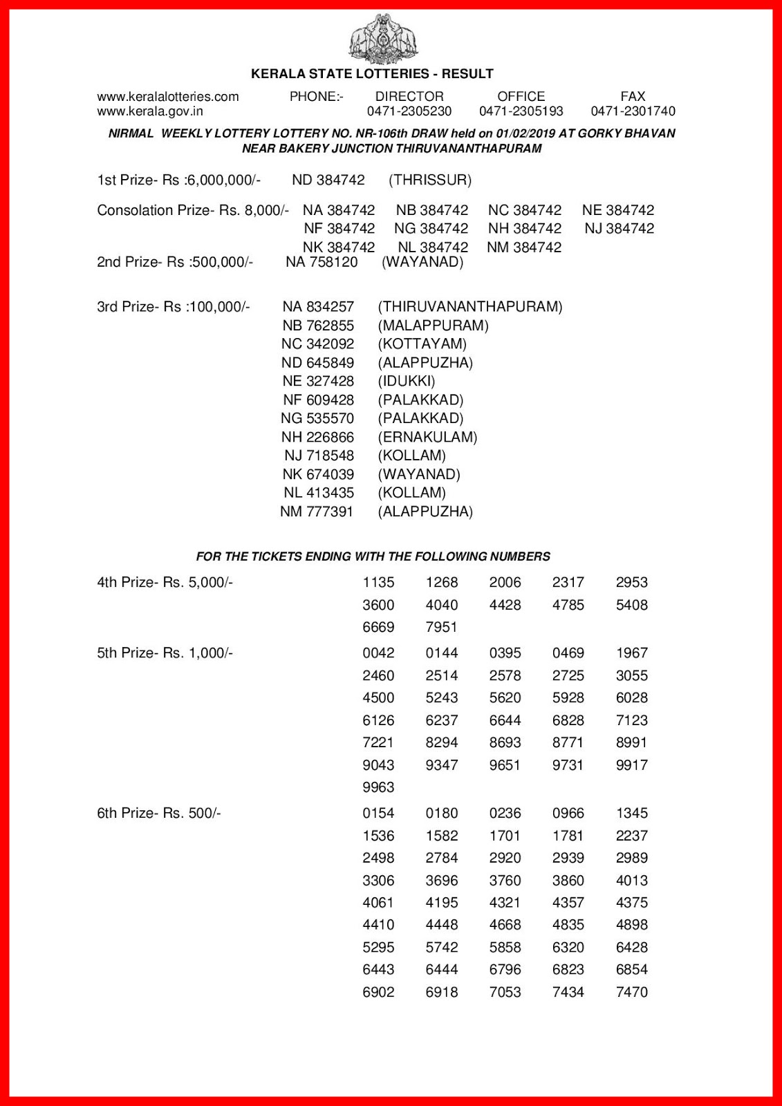 Nirmal Lottery Nr106 / Officially lottery results from 4:00 pm to 4:15 pm.