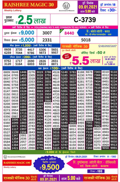 Rajshree Saturday Lotto Rajshree Saturday Lotto : Hello, lottery contenders today we are back with goa state biggestjackpot lottery result.
