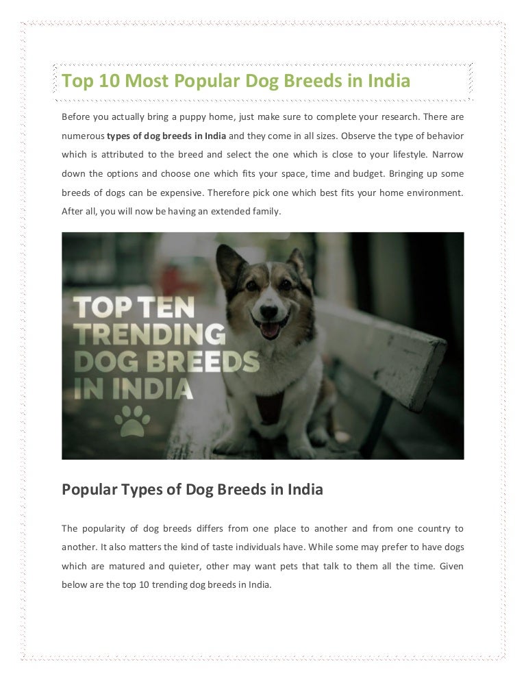 Top 10 Popular Dog Breeds In India Top 10 Popular Dog Breeds In India : Dogs are the most loyal, affectionate, and intelligent animals to be taken as a personal companion.