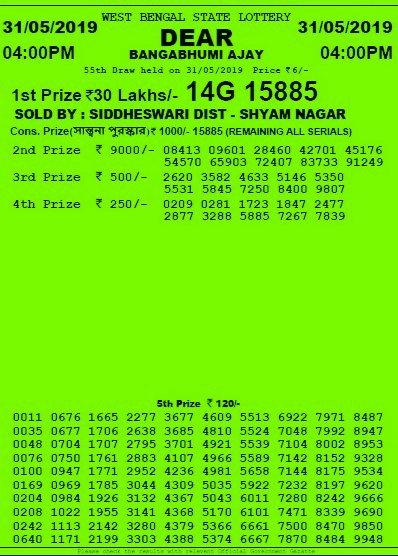 Lottery Sambad Result 19 06 2020 West Bengal State Lottery Dear Bangabhumi Ajay Results - This lottery is also known as paschim banga rajya lottery and bangalakshmi lottery in this state and other state of india.