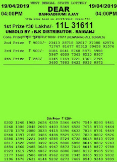 Banga Bhumi Ajay Result Of West Bengal State Lottery 10 05 2019 Lottery India - West bengal state lottery banga bhumi ajay.